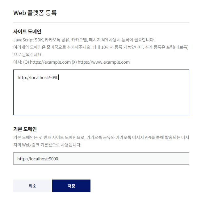웹에서 사용할 것이기 때문에 Web 플랫폼 등록 버튼 클릭